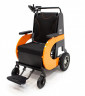 Управление электрической коляской осуществляется сопровождающим, стоящим на специальной платформе позади коляски. Пульт управления (джойстик) удобно расположен на регулируемой по высоте опоре. Коляска оснащена ремнем безопасности для пассажира, а также полкой для перевозки ручной клади.