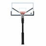 Стационарная баскетбольная стойка DFC ING54U относится к серии антивандальных стоек. Точки крепления на этой модели находятся по краям щита, что повышает надежность конструкции. Кольцо крепится напрямую к основанию, что увеличивает максимально допустимую нагрузку на него.   Щит изготовлен из закаленного стекла толщиной 8 мм и имеет размерность 136 х 80 см (54’’). По периметру щит имеет кант из металла. В нижней части щита и на стойке установлено защитное покрытие Poly Pade. Стойка комплектуется кольцом DFC R3 с амортизацией, которое выдерживает нагрузку до 100 кг в передней части.  Бесступенчатая регулировка высоты с помощью ручки в диапазоне от 245 до 305 см. Основание стойки бетонируется с помощью 4 анкеров (в комплекте), размер ямы под площадку должен составлять 50х50см. В целях безопасности и во избежание повреждения оборудования запрещается висеть на кольце и других элементах баскетбольной стойки.
